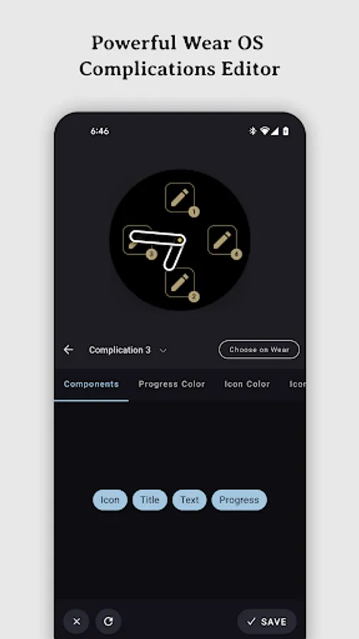 You can even customize the visual elements of the wear OS complications you have added to our watch faces. Preview your complication edits in real-time on the wearable device as you edit it on the companion app on your phone.