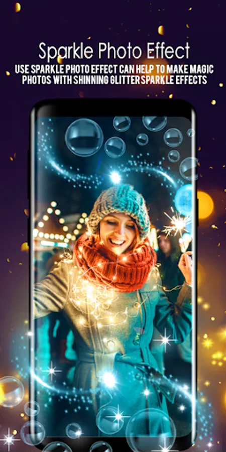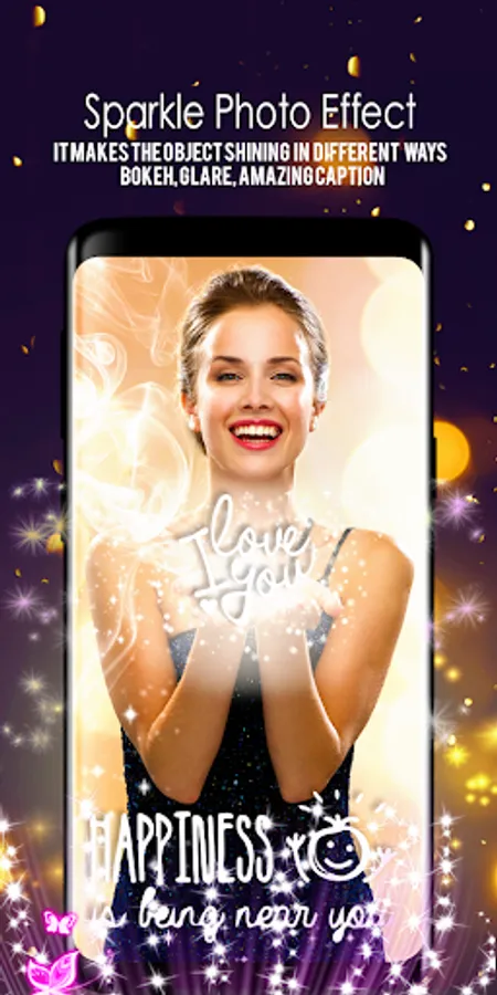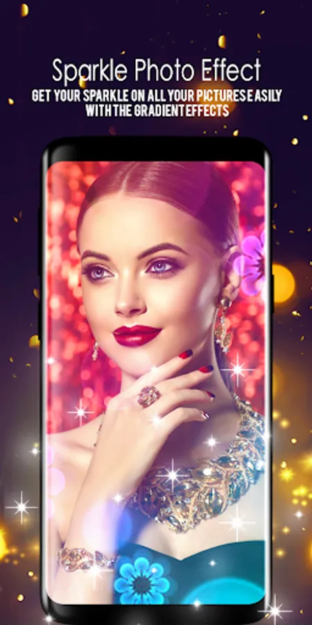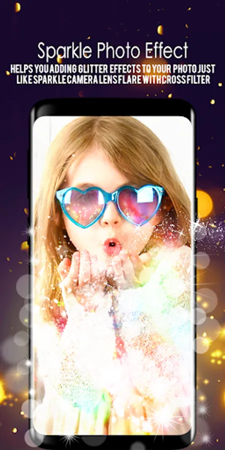 Exclusively with this powerful editor you can benefit from a wonderful sparkle camera effect that offers you a marvelous glitter effect that can bring a shining photo background to your pictures .
