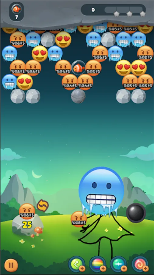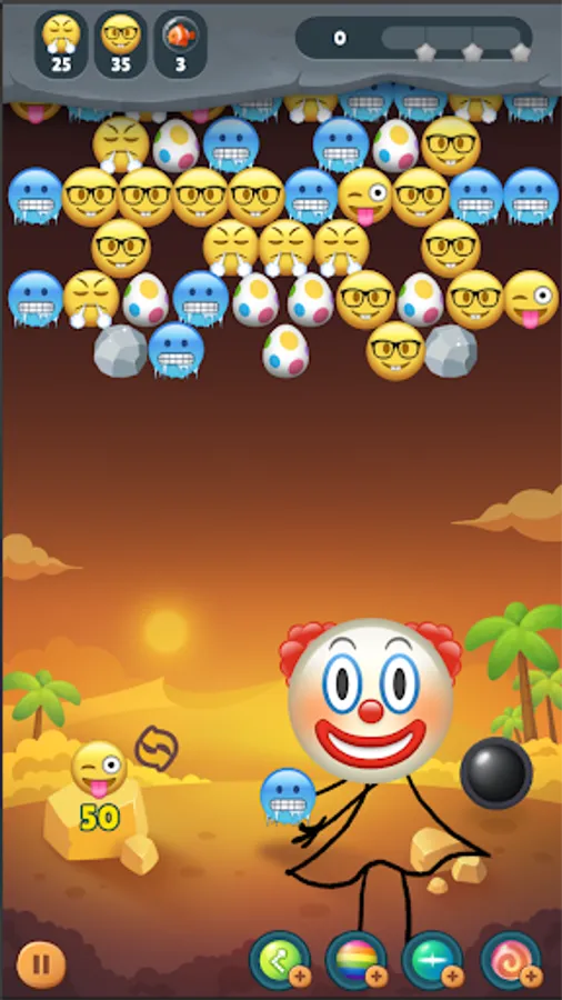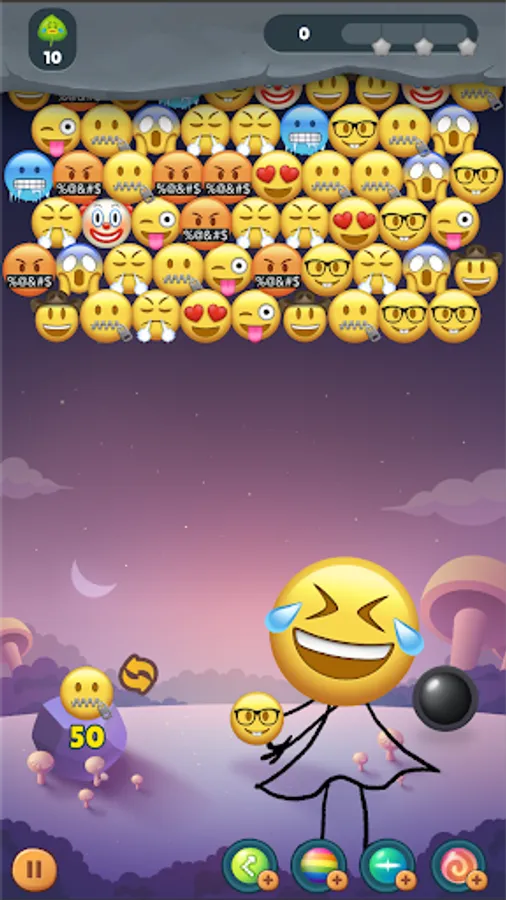 * Through aiming and shooting, match three or more of the same type of emojis to complete the smash, shoot down all the emojis to complete the level.
