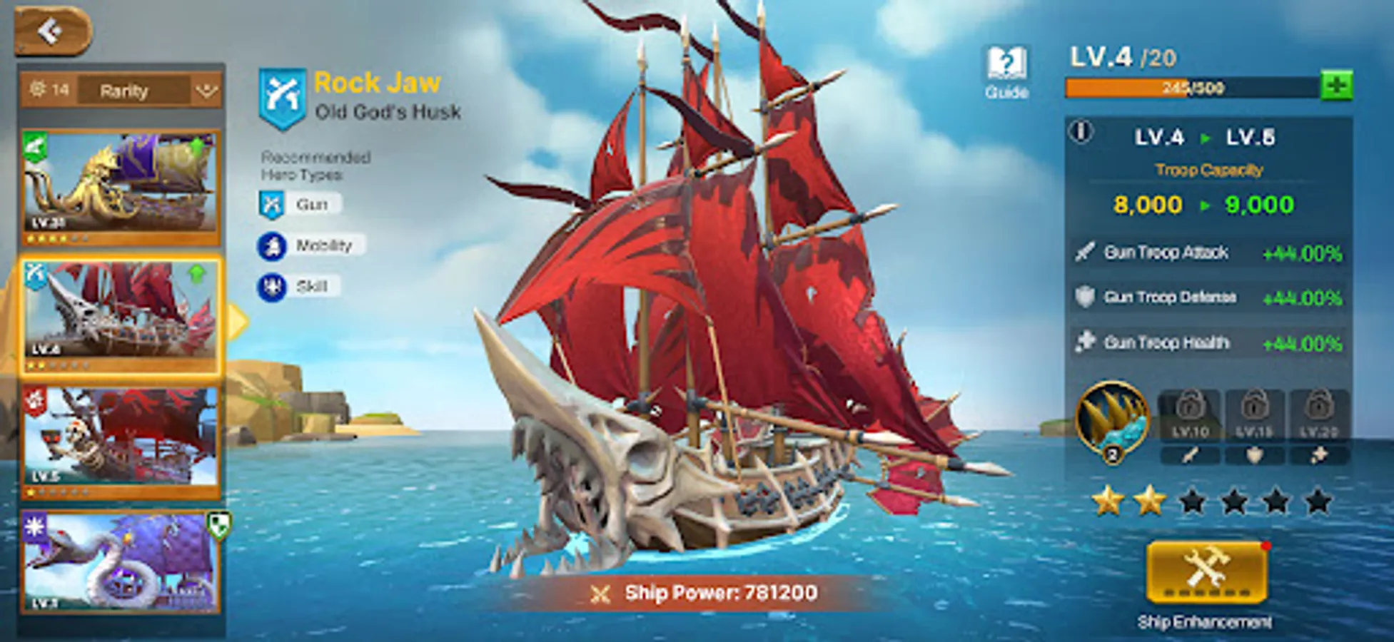 Call upon dozens of epic ships which will serve as your trump card on the battlefield, from La Niña and Rock Jaw to The Guardian and the Vikings Nordic Long Ship.