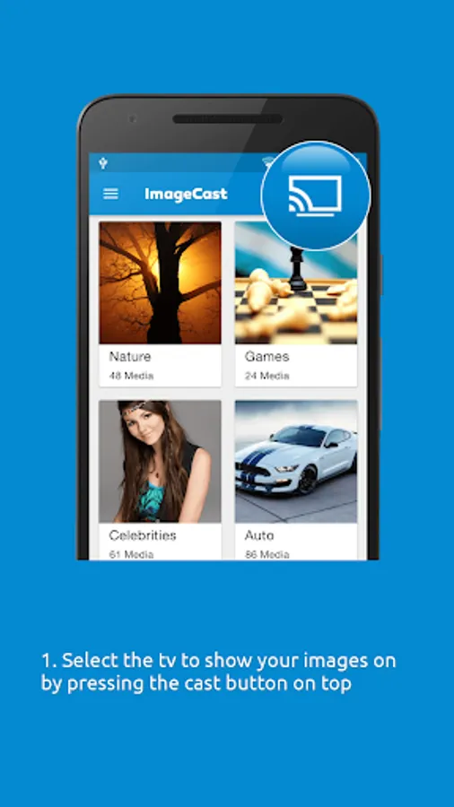 ImageCast will check your device for any photos, sort them, and have them ready at your fingertips, for viewing on your device or the big screen.