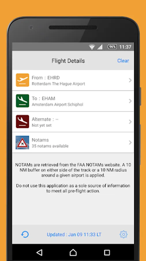 With Notams you can download notifications for your departure, arrival and destination fields as well as notices for en-route fields and various FIRs/Centers. What's more, this works worldwide!
