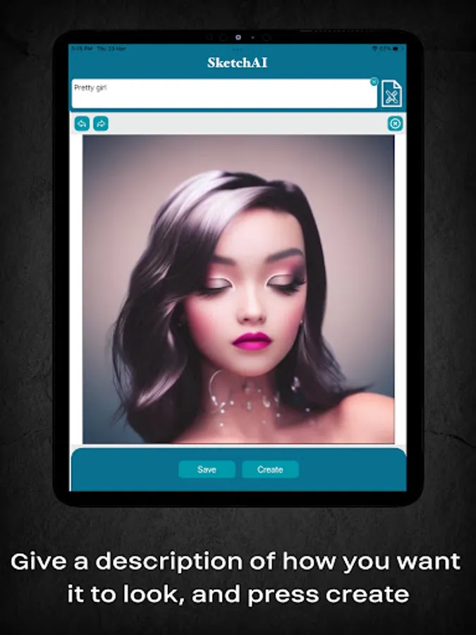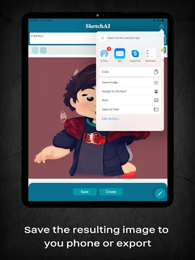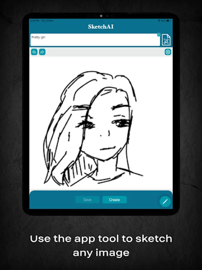 The tool offers a range of drawing tools to help you create your desired shape. Once you've drawn the outline of your image, simply press the 'create' button and SketchAI will use its advanced AI algorithms to complete the image for you. You can then save your creation to your phone or export it as desired.