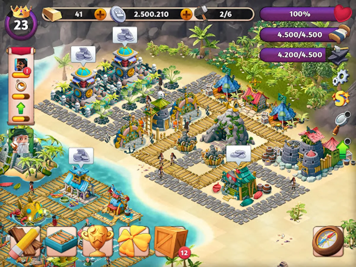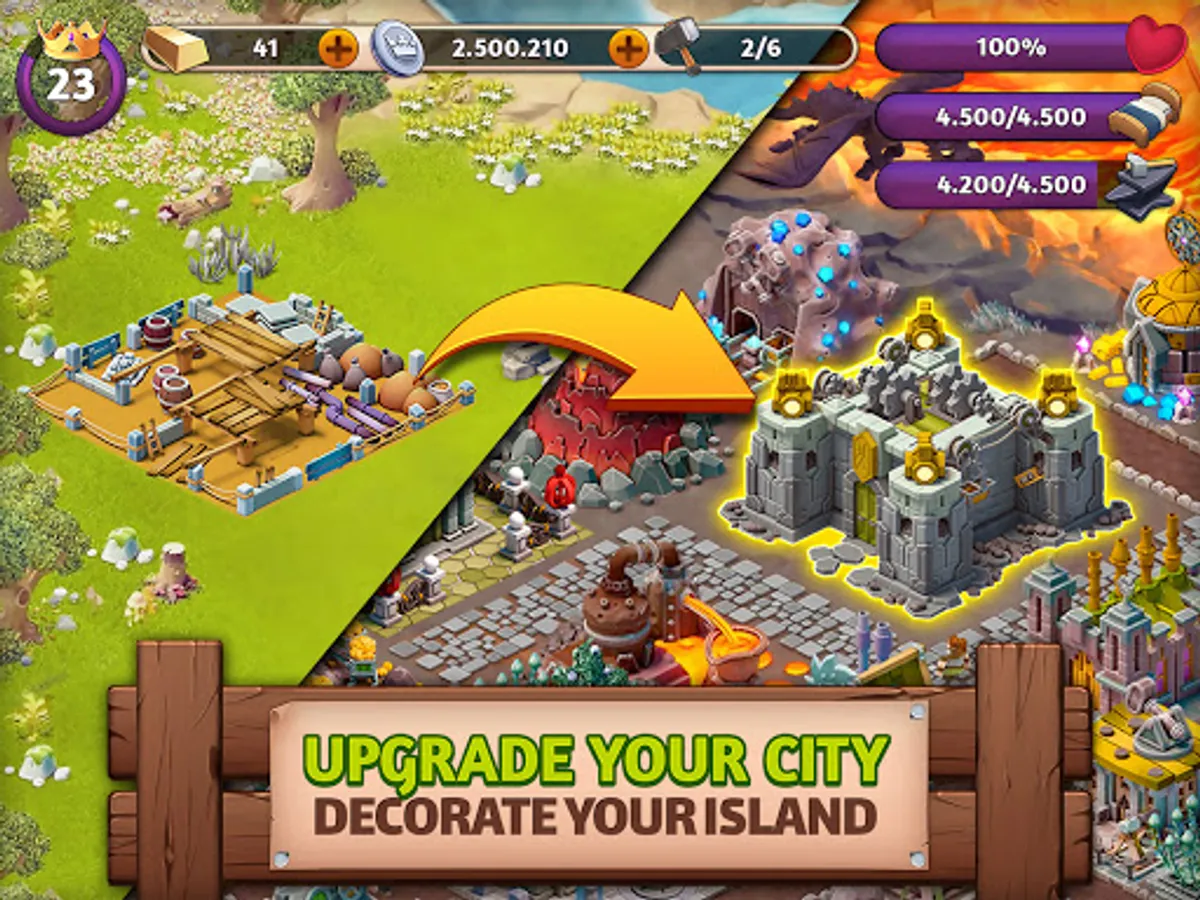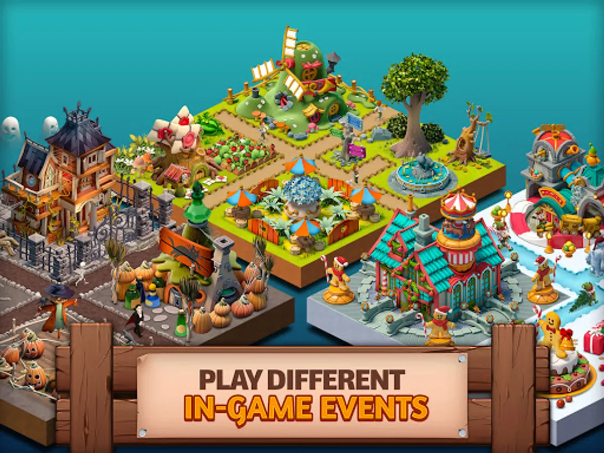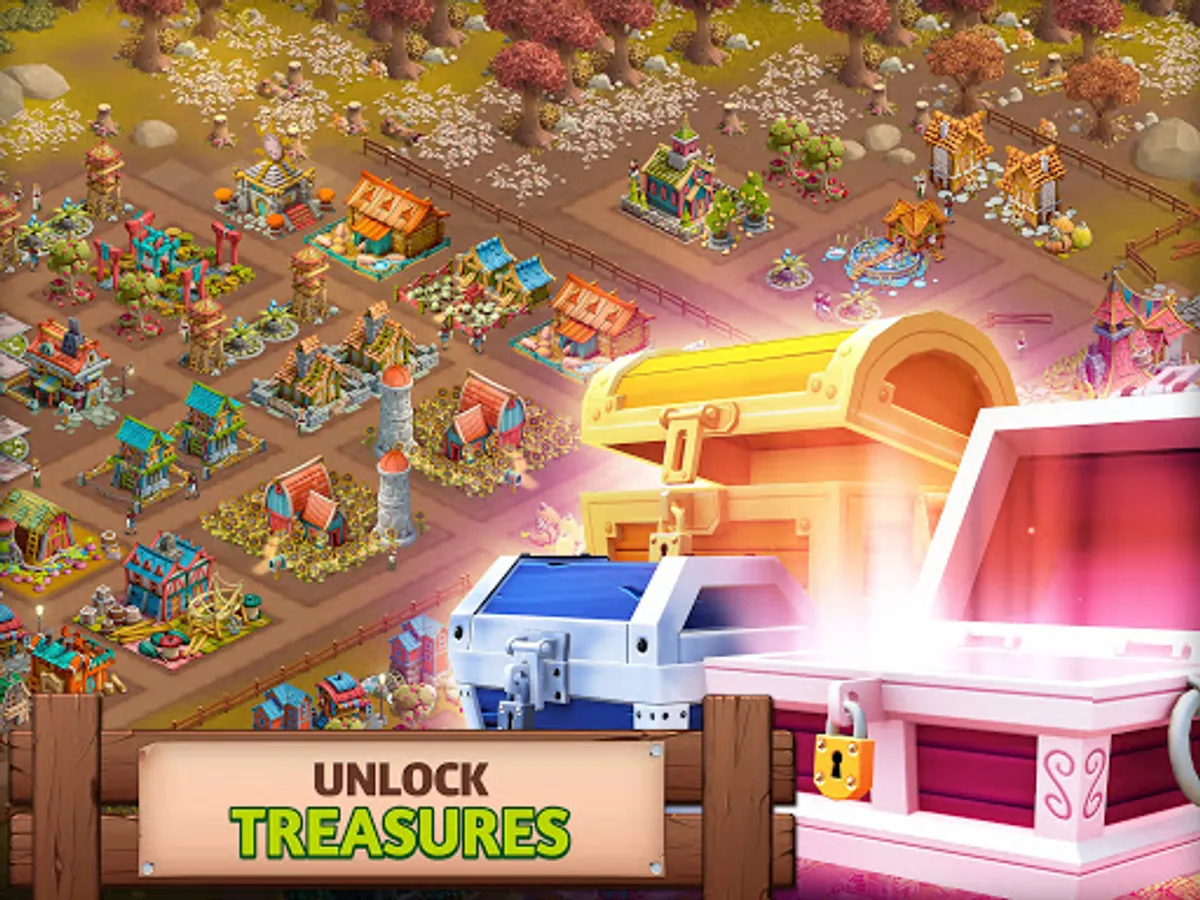 Expand your village into an empire and discover different tribes like the pirates, gnomes, elves, dwarfs, polars and villagers. Each tribe community has unique buildings to build. Collect all different legendary fantasy buildings to expand your city.