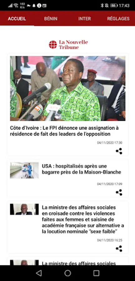 La Nouvelle Tribune is the app you need to follow important news in Africa, Europe and the world. Find the news that matters, analyzes, an active community but also the possibility of exchanging with other Internet users.