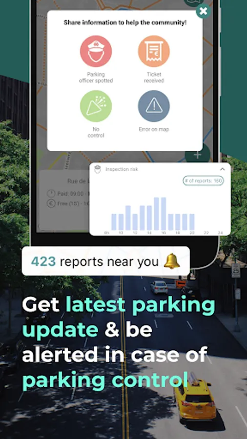 Thanks to our community you will always have access to the latest parking information and the best parking tips. Our smart notifications will also alert you if a parking officer is spotted near your car or when your parking time is up.
