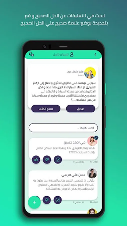 The Vivor application is a practical and convenient application to solve all your problems, which is a platform through which you can view your problems and ask for help, and others comment on your post and offer solutions to your problem, and after searching in the comments for the correct answer and you determine the best solution in the comments and gets The owner of the correct comment on points in exchange for a comment with the correct answer. You can also search for problems similar to your problem and see the correct solutions for them.