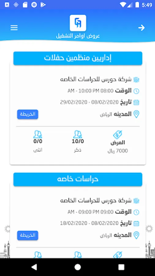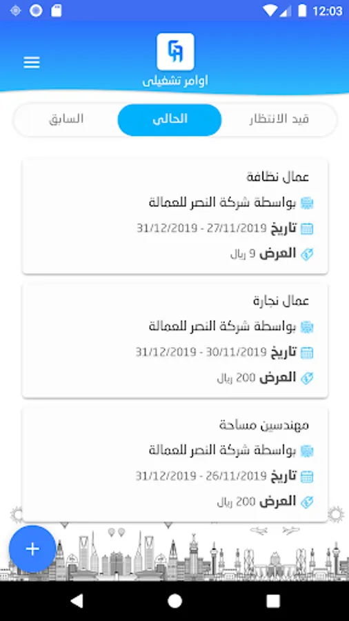 A system that works on the Internet that includes requests added by requesting companies to provide specific services for a certain period and for a certain amount, with a choice of the type of service providers required, with the ability to search for service providers to easily and easily submit the added operating orders.