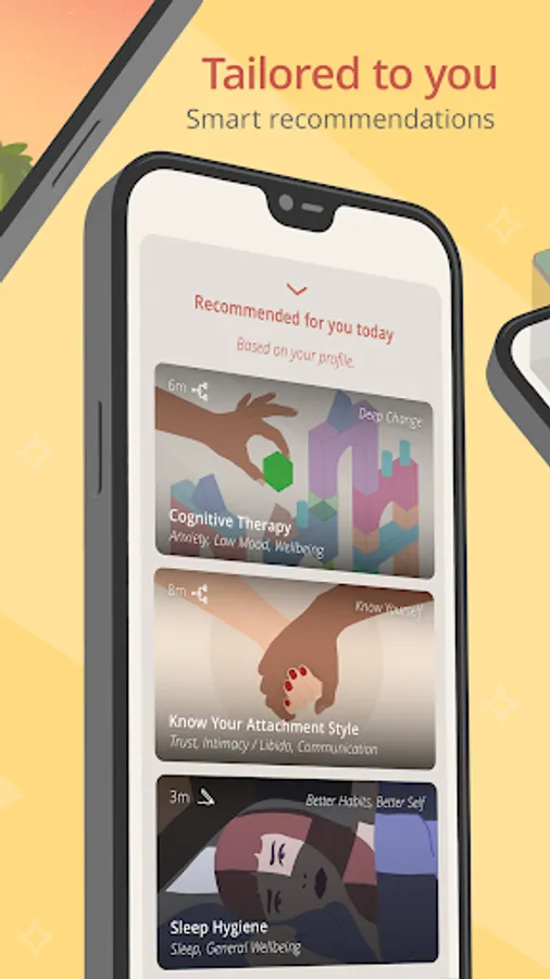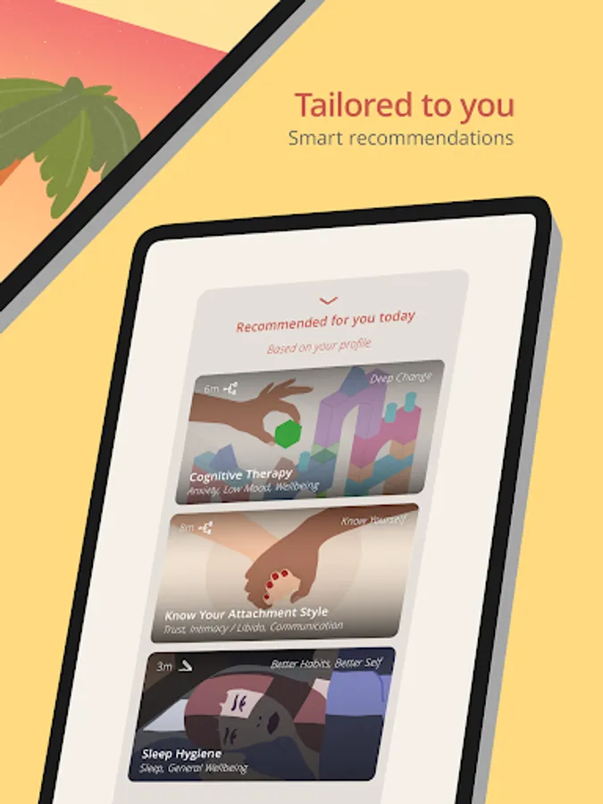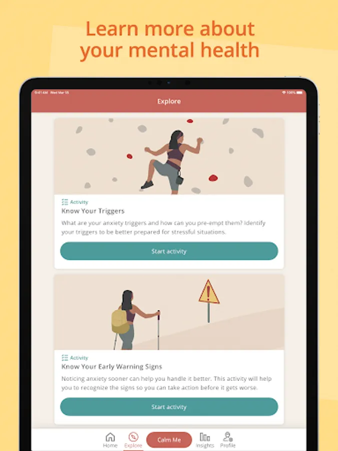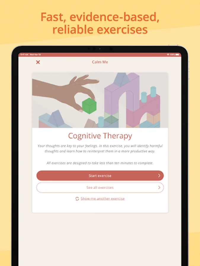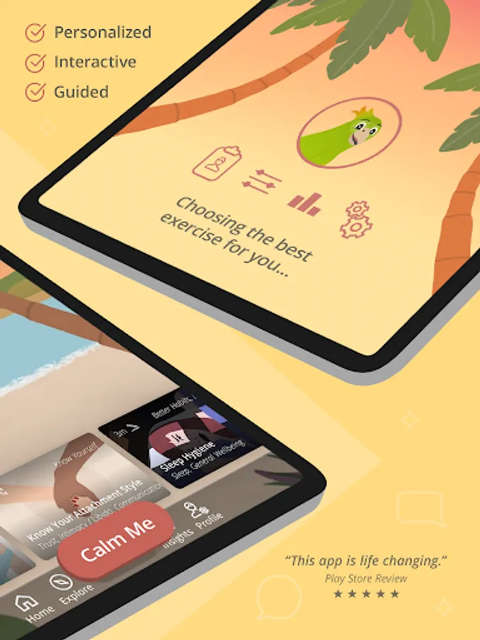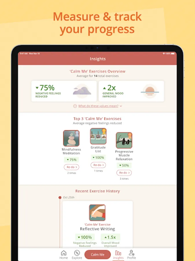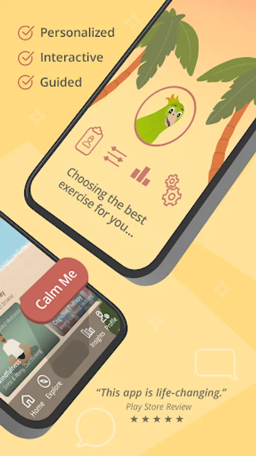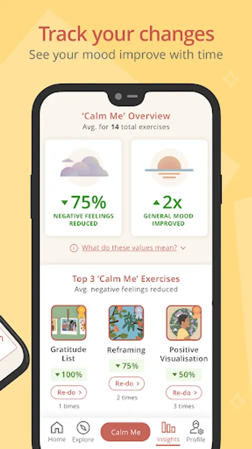 The app has a wide library of activities to support your longer-term mental health needs, including specific content for anxiety, low mood, and depression. Our users love the effective Calm Me exercises for how quickly they work—in less than 10 minutes!