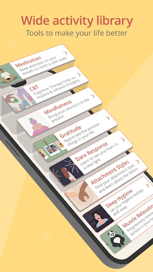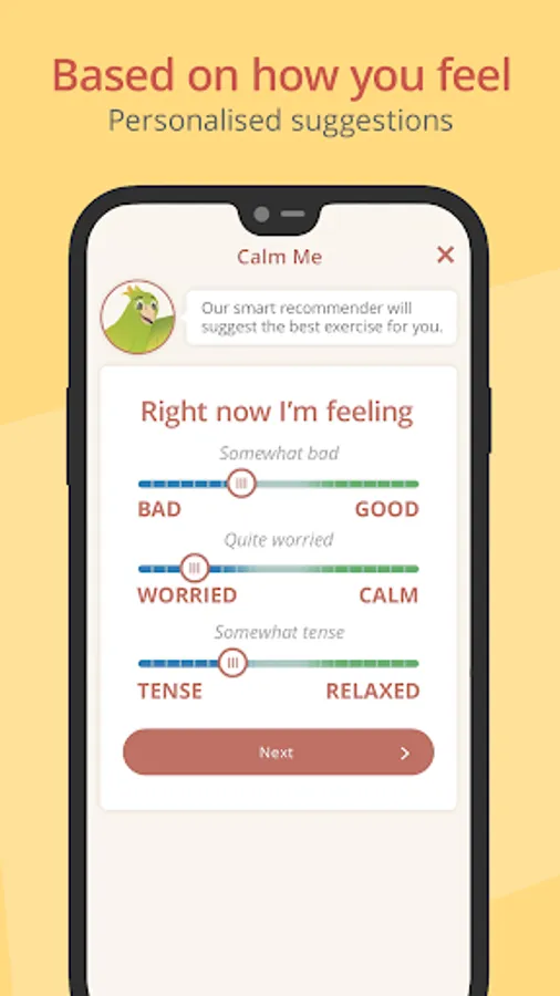Everyone experiences anxiety & panic differently. There is no one-size-fits-all solution. The app’s smart recommender gives you clear suggestions for activities specific to you. You’ll never feel lost or confused about what to do next!