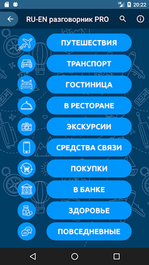 Phrasebook, which contains about 1,000 basic phrases that will help you in traveling abroad. It does not contain advertising.