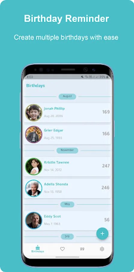 Don't lose track of birthdays in the noise of your calendar. This app simplifies everything! Easy and clear. Everything in one app.