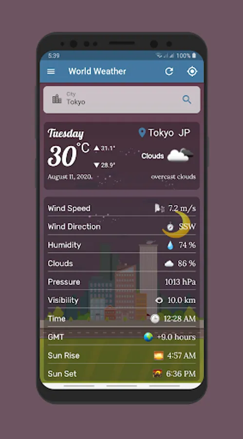 Realtime temperature, humidity, pressure, wind speed and wind direction sunrise sunset time are all in this Amazing app