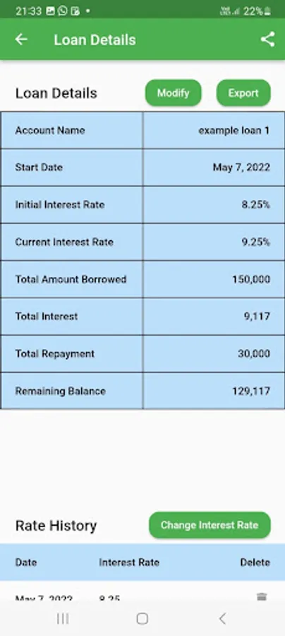 - Loan Management: A unique loan management tool to keep track of all the loans given to a friends/family. While a loan amount is given to a friend, they may require to borrow some more amount at a future time, and they can repay any time instead of paying monthly EMI. This APP takes care of all this requirements beautifully. A loan can have multiple borrow transactions and at the same time it can also have multiple repayment transactions. Interest can be calculated till any date from the Loan start date. The APP takes into account all borrow and repayment transactions till the date interest calculation is being asked for. Interest rate can also change during the tenure of the loan. Loan management is one of the most useful feature in this app.