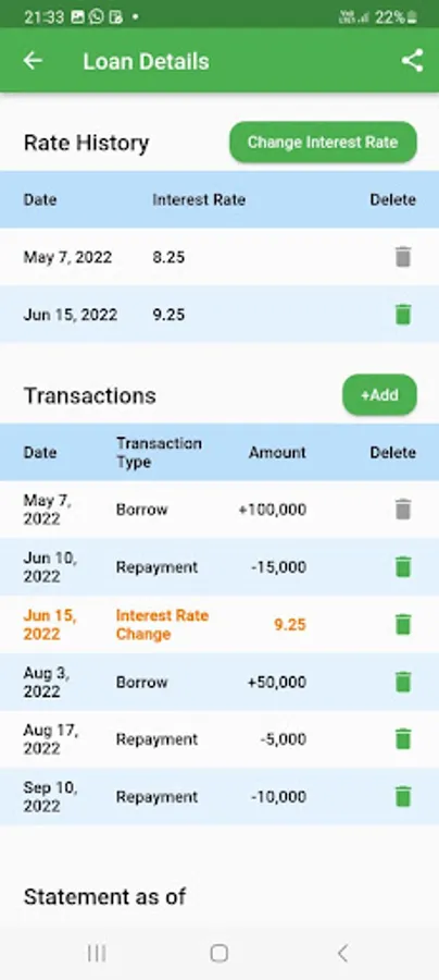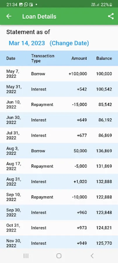 - Loan interest calculation till any selected date with multiple borrow and repayment transactions