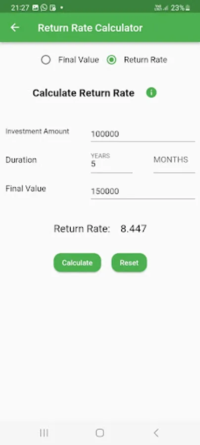 - Rate of Returns calculator: Calculates rate of return from past investment