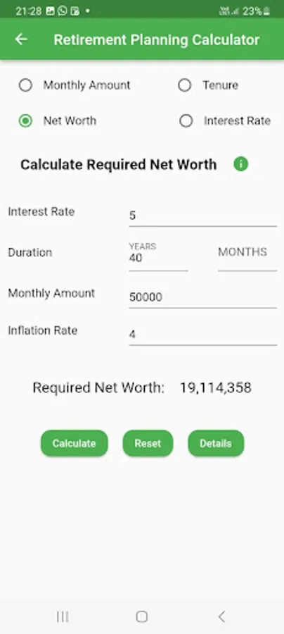 - Inflation Adjustment: Does retirement planning by taking inflation into account. Similarly can calculate loan tenure by taking incremental EMI into account.