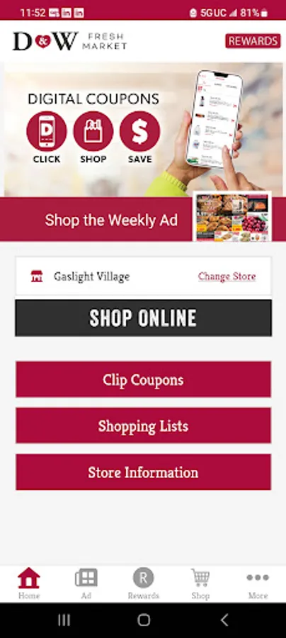 The D&W Fresh Market app helps customers easily view our weekly ad and save even more through our yes rewards program with coupons, clubs, and rewards. Enhance your shopping experience with everything you need right at your fingertips including store hours, online shopping with the Fast Lane, and more!