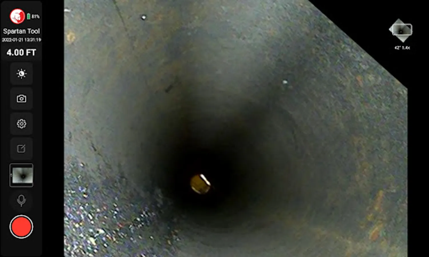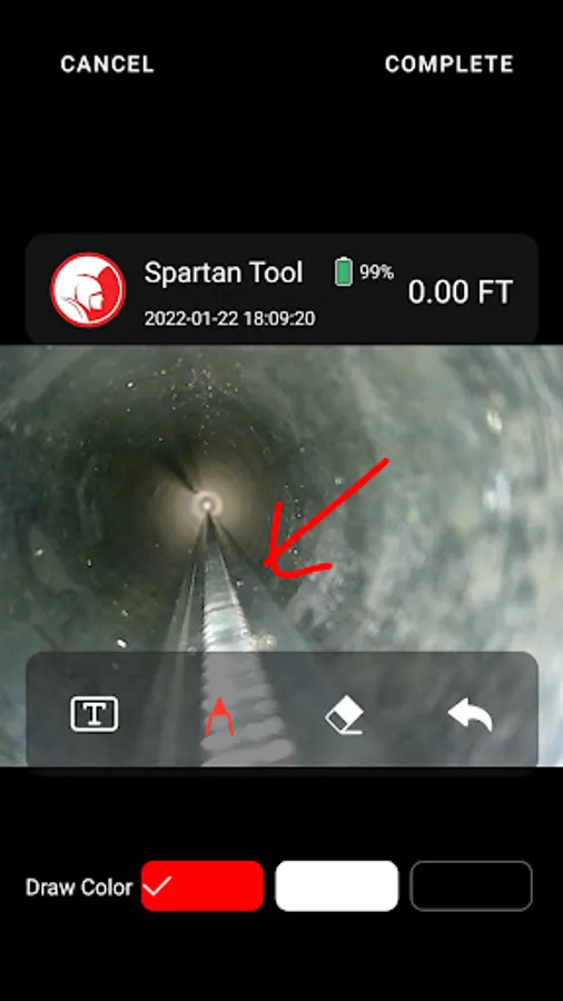 The Spartan Vision app is designed to work with Spartan pipe inspection cameras. Spartan Vision features a user-friendly interface to make your inspection jobs a breeze. Rotate and zoom your view with on-screen controls and one-touch reset for optimizing your view inside the pipe. Adjust the camera’s LED intensity with simple controls for better visibility. Easily add on-screen text notes, record audio voiceover narration for your video files, and take screenshots directly in the app.