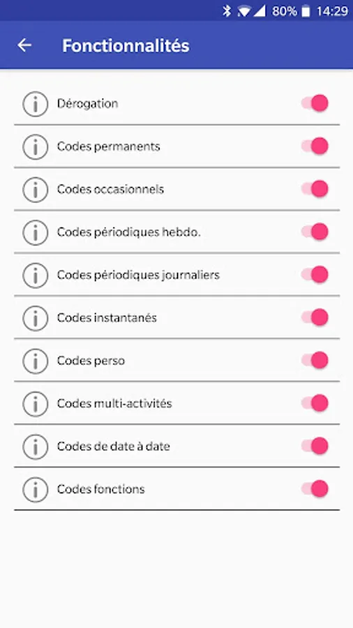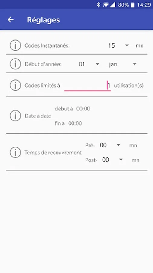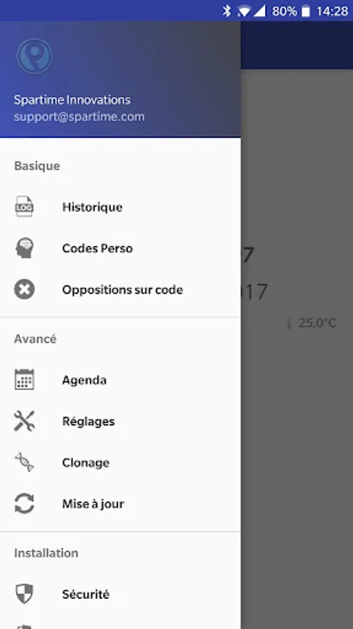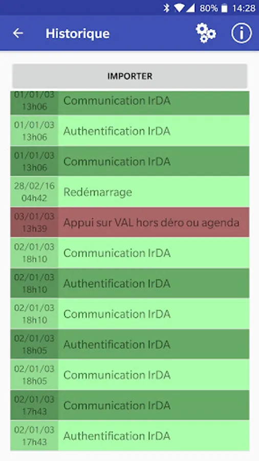 The Pékatrès software can change the internal settings of a doorman PersoCode S. For this, it downloads the full infrared (this step is called later "import" and lasts about one second) and creates a copy in memory smartphone. Thereafter, any changes made using the software Pékatrès affect this copy and not directly the porter. Changes can be made without the smartphone is facing the doorman. Once all the changes, it should be transmitted to the device (called step "export" for about one second as well).