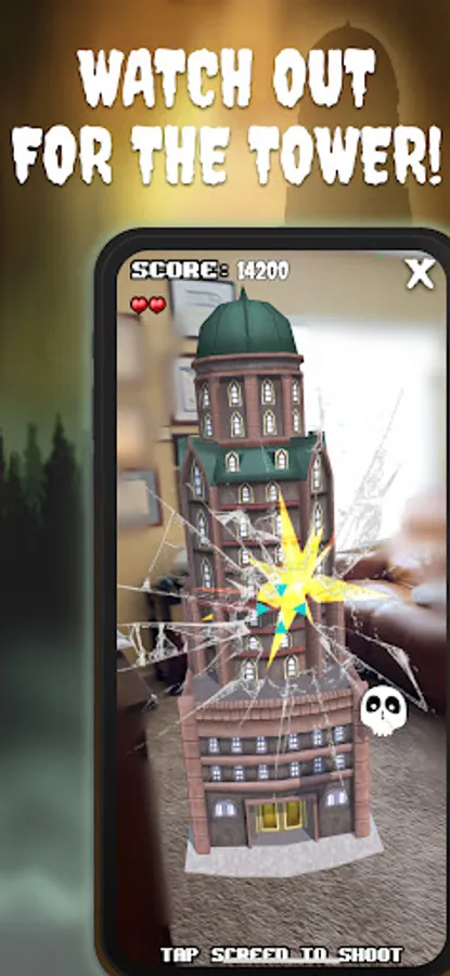 Ghost Tower AR is a fun, real-time light-shooter augmented reality mini-game. Try and shoot down pesky ghosts and ghouls. Defeat all foes by bringing down the tower; you reduce the tower’s power with each hit. You can play indoors or outdoors. The best game experience is in an open space (or big room) big enough that it allows you to move around (circle) the tower; it is a 360-degree experience!