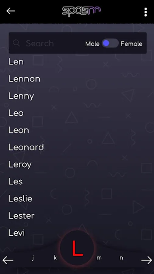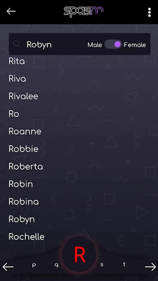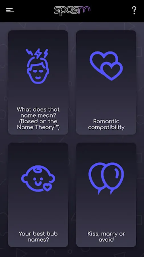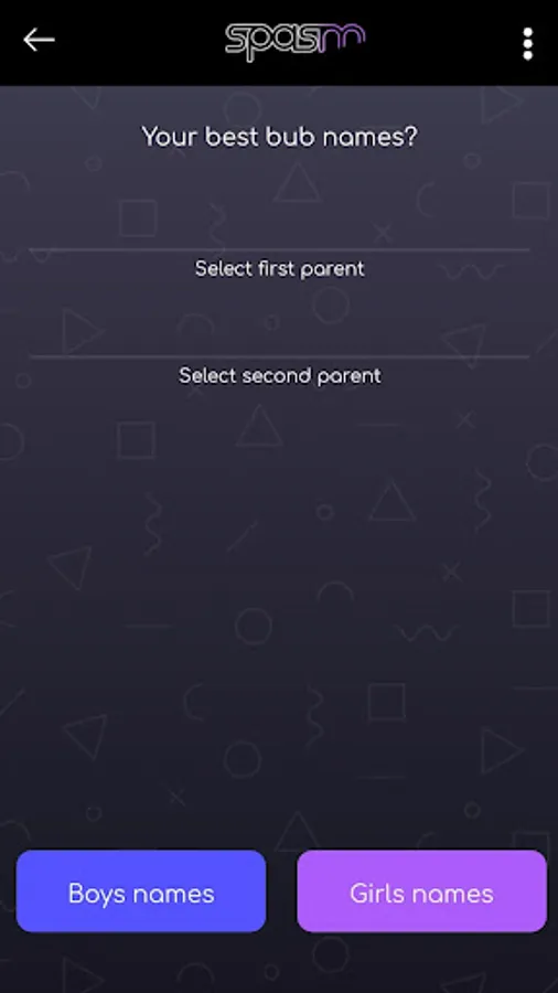 Simply enter the names of both parents into the search bars, ensuring you nominate their correct genders, then SPASM will list the ideal set of boys or girls’ names for that particular partnership.