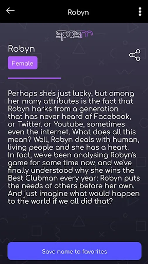 - Tapping on each of the names in the list will give you the child’s theoretical personality AS AN ADULT.