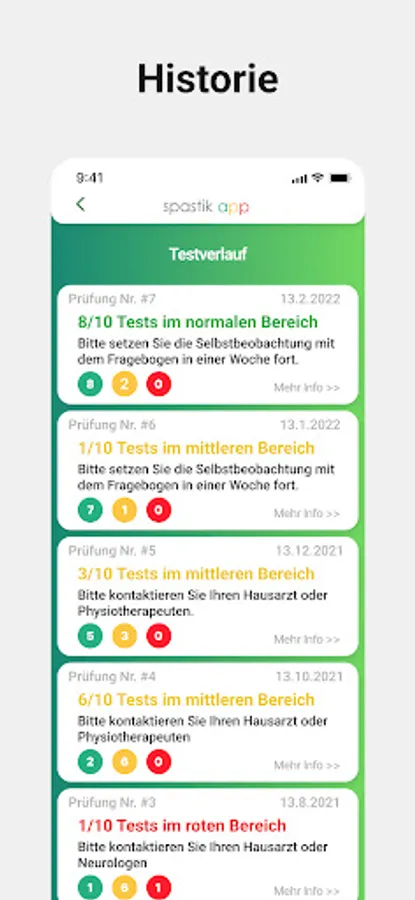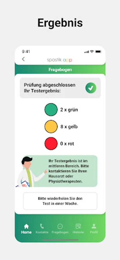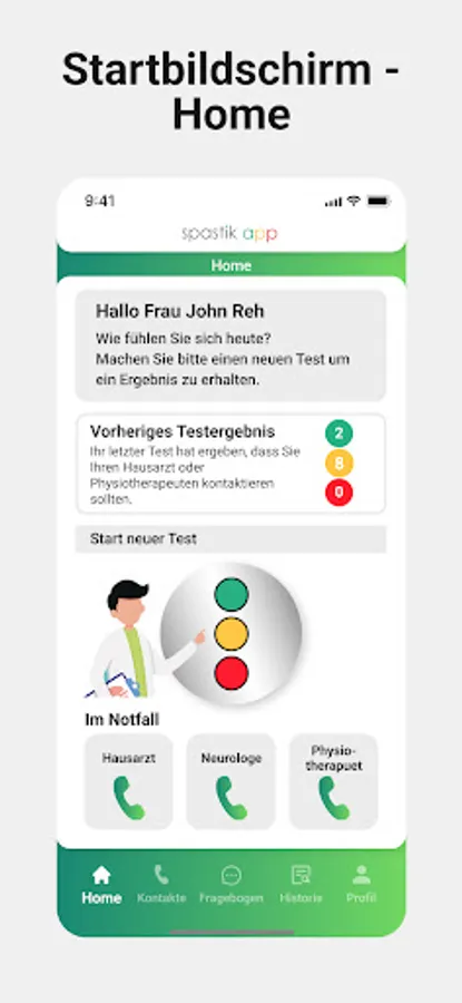 The app is based on the principle of a questionnaire according to the traffic light principle. This is to be completed at regular intervals (weekly). Depending on the test result of the questionnaire, the patient is advised to contact their family doctor, physiotherapist or neurologist.