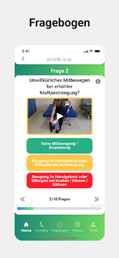 The use of the Spastik-App is intended to support patients after a stroke in regular self-observation (self-monitoring) to look out for signs of spasticity that may be developing and to arrange for clarification by a doctor at an early stage.