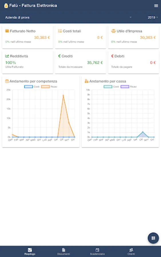 With Fatù (Electronic Billing) you always have a dashboard that gives you the status of your company in real time.