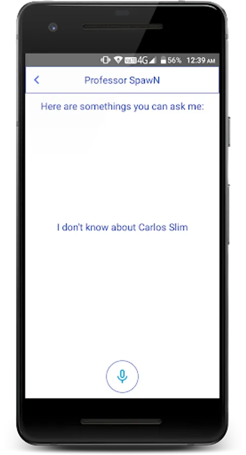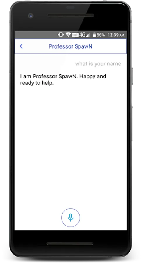 Professor SpawN is a smart digital assistant who takes input as a voice, understands the user intent and responds with the appropriate answer.