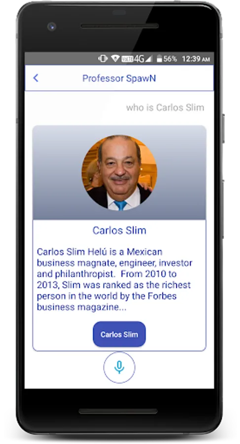 * Find information about a celebrity ("who is Carlos Slim", "Shahrukh Khan")