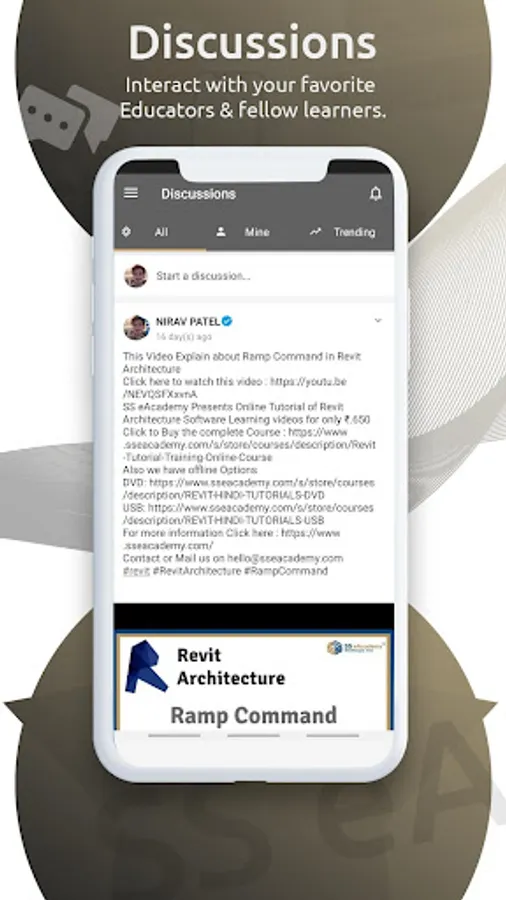 SS eAcademy is online learning Platform. Discover the course in the field of Design and Analysis software such as AutoCAD, Revit, Creo, Staad Pro. All the courses are available in Hindi and English language prepared by professional instructor. Join the largest platform for learning designing software.