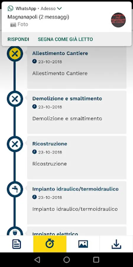 Timeline updated in real time with the various steps of the works, already completed or scheduled for a certain date;