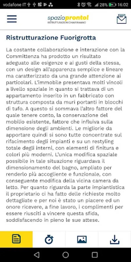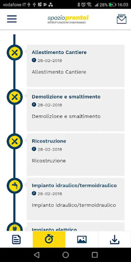 Timeline updated in real time with the various steps of the work already completed or scheduled for a certain date;