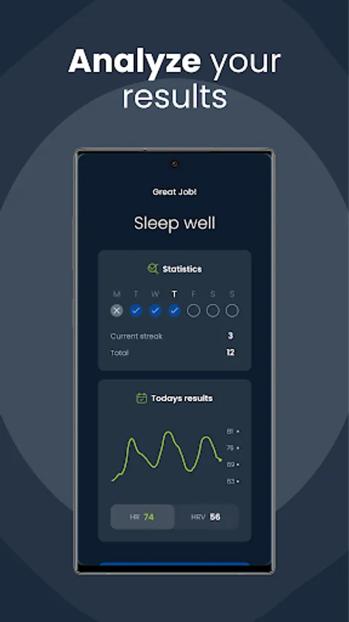 The Paced Breathing app provides guided breathing training for every day, including information about your heart rate (HR) and heart rate variability (HRV). Using photoplethysmography (PPG), all you have to do is put your finger on your camera during your workout. The app also provides statistics on your previous exercises, including exercise reports and alerts, so you'll always be up to date and never forget your breathing exercise!