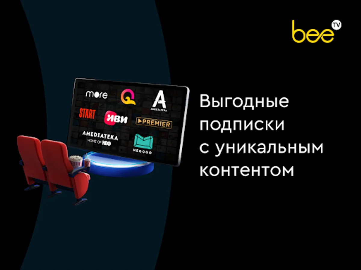 • A unique free section BeeTVFREE, which is available for viewing without payment, which has TV channels, films, cartoons, series, content in the Kazakh language