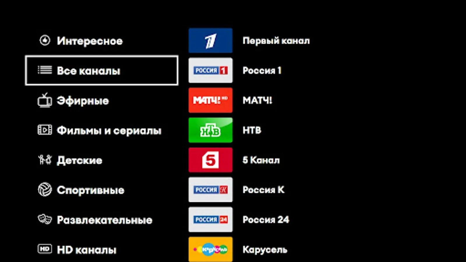- More than 180 Russian and foreign TV channels: children's, television series and films, sports, music, scientific, entertainment, religious and others
