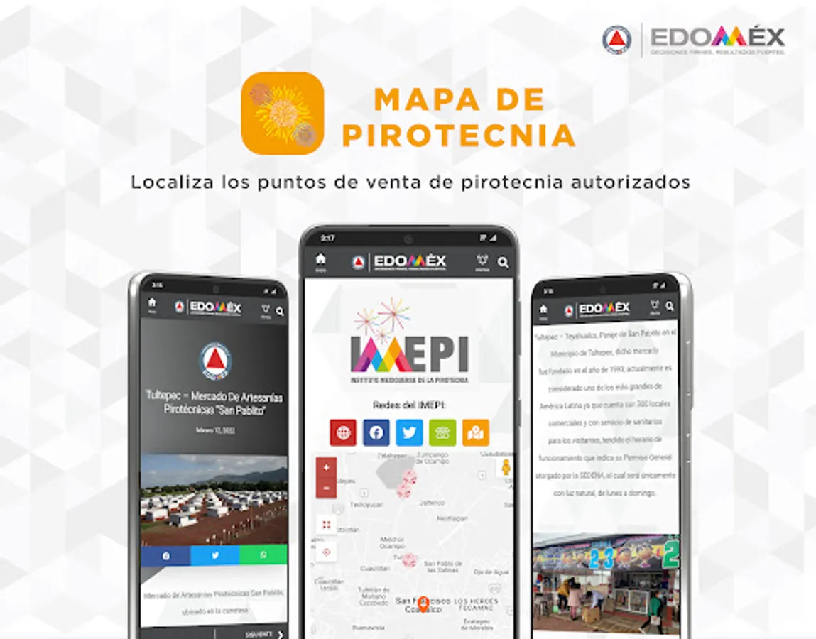 Through this application you will be able to locate the Municipal Civil Protection and Fire Department Units, as well as the state and municipal aid agencies; the temporary shelters of the Popocatépetl Operational Plan; fireworks sales points authorized by IMEPI and SEDENA; check weather information; infographics with prevention recommendations; updated reports from the national Meteorological and Seismological Services; information and image of the activity of Popocatépetl; Request help from the 911 emergency number, in addition to receiving information on courses, workshops and other activities related to risk prevention and self-protection.