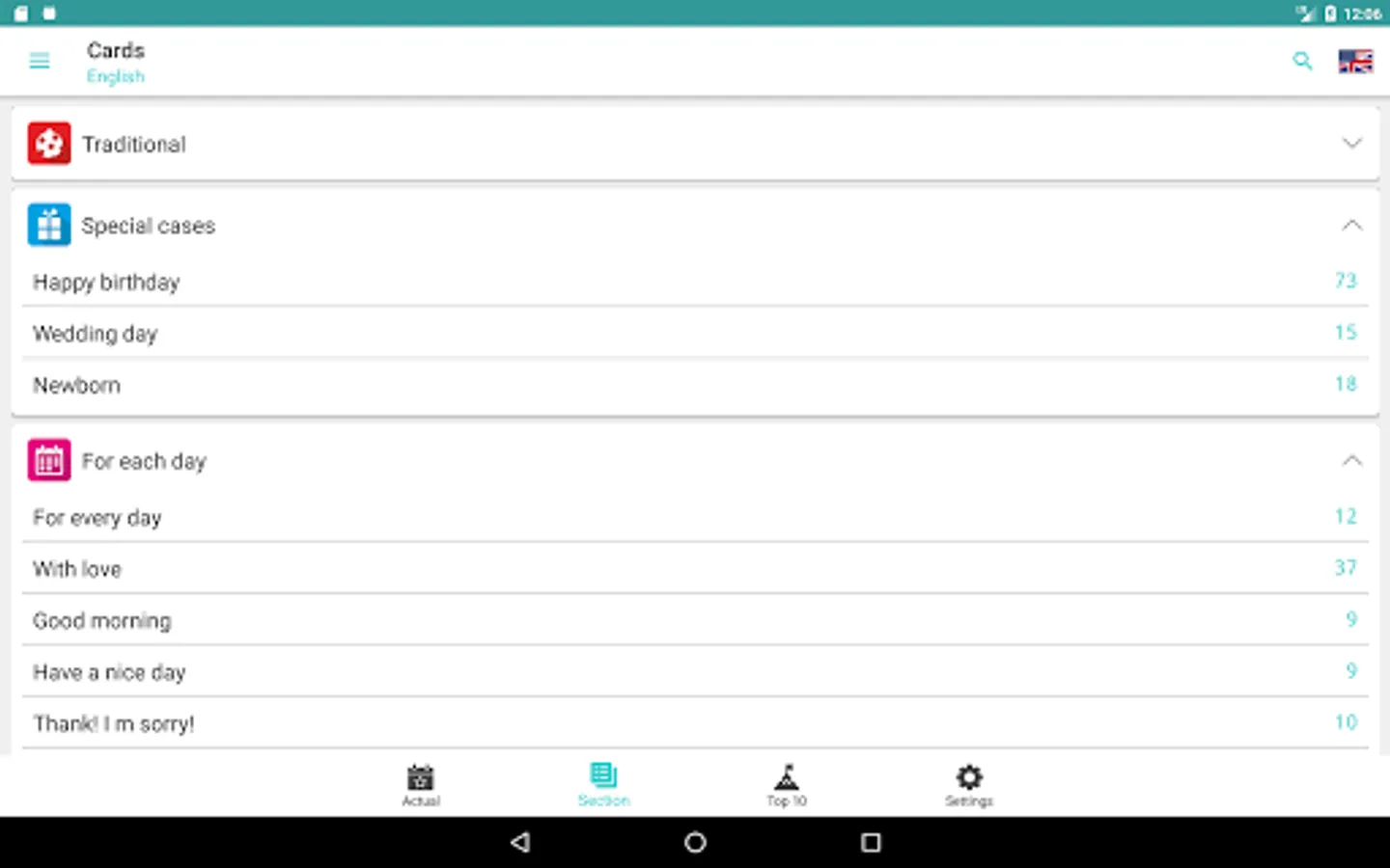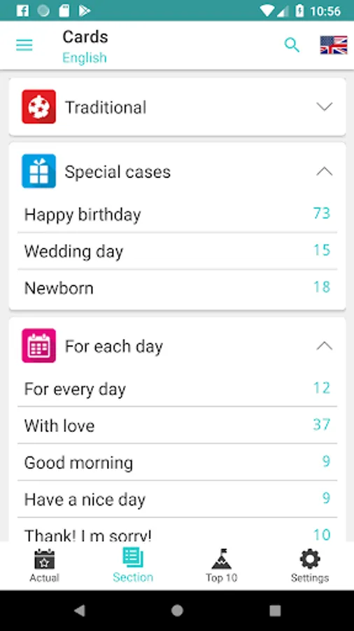 There are cards for the main holidays: Easter, etc.