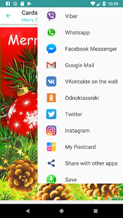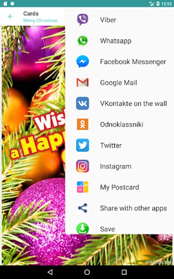Choose any card and send it by e-mail, or friends in social networks (like Instagram, etc), messengers (like whatsapp, etc).