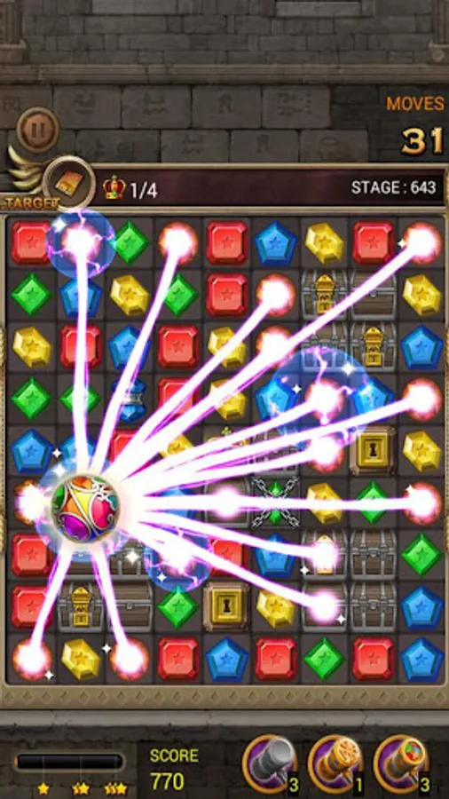 Earn win-streak bonuses and booster hammers. As the match progresses, you will get special jewel boosters. Colorful jewels are very powerful. Please use it at your discretion - and get pleasantly surprised! You will bedazzled by the magical effects.