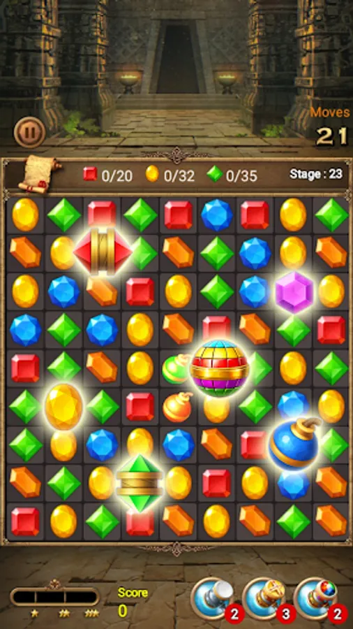 Bejeweled and get ready to explore the ancient temples and earn gold. Beautiful jewels are randomly spread across the floors and the walls. Match the jewels and earn your coins. When you match 3 jewels, you will earn points, boosters and special abilities. See how far you can go by yourself. Test your brain’s ability. If you want a classic match 3 game, you are looking at the right game.