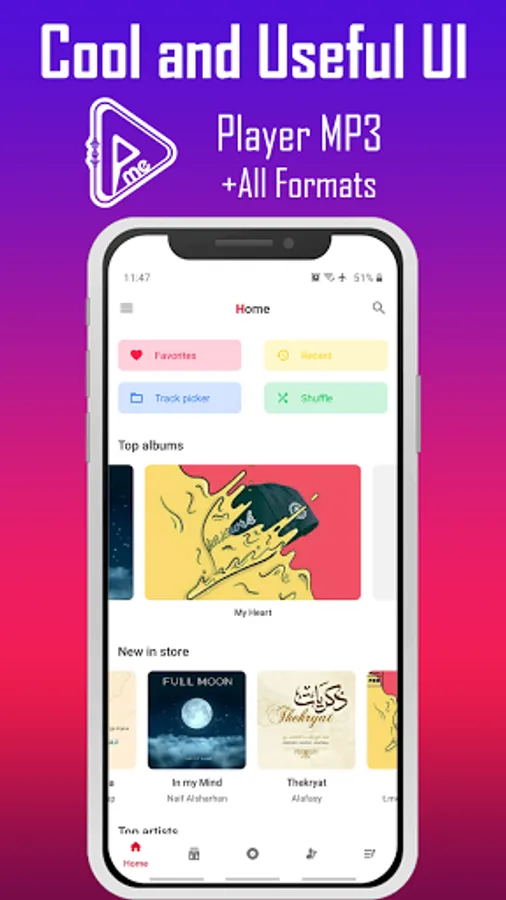 • PlayMe Player helps you to play all audio formats and is considered an MP3 player on your device without errors or problems.