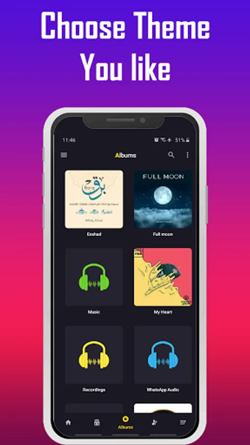 • Navigate between the main pages to view the audio files on your device and sort them however you want.