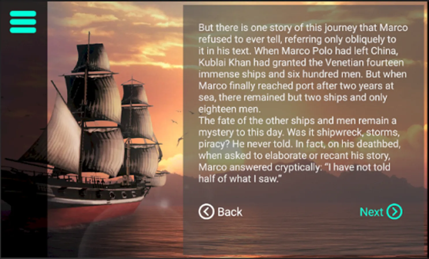Waiting at the airport or a long ride with a bus? Put your headphones and dive in to the story following Marco Polo's steps and help modern doctors overcome the global pandemic that is threatening to wipe out every living being. Will Nature take a break from humanity or humanity survive it once again.