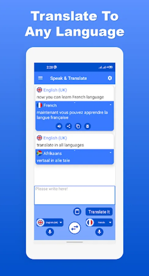 We are providing you free language translation app. It is a free app with a user-friendly interface. You can listen a translated voice in the uses' targeted language with a native accent with a single click. Our Speak and Translate app is free from cumbersome interface and very easy to use. It is a free lifetime. All of its traits are embedded in a single translation mobile application.