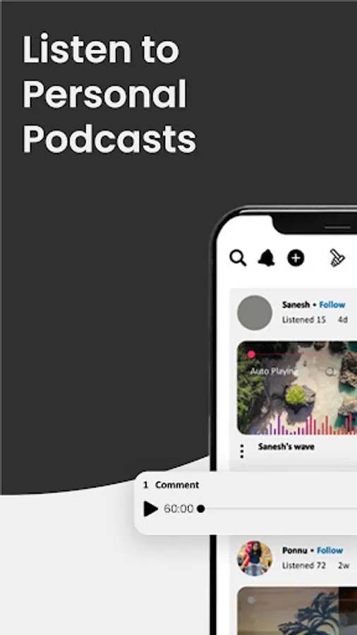 Create audio content in your voice or upload it. Share it with your followers. Be a SpeakApp creator and be part of the growing audio creator community. You can also add photos, videos, and text captions to support your Audio content. Create podcasts or audiobooks for your followers. Share content in any genre like travel, cooking, motivation, education, sports, movies, politics, and more.