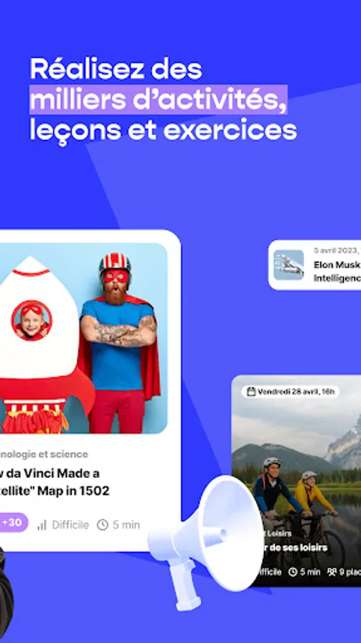 Every day new varied, original and topical content as well as live sessions to evaluate your skills and see your progress!