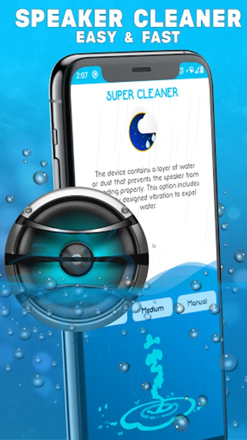 Speaker Cleaner remove water and fix sound is ideal for cleaning the speakers.It has a basic functionality in which it uses sounds of different predefined frequencies to extract water from the speaker in such a way that the sound waves and their frequencies make the speaker vibrate and shake the water that has been trapped thus cleaning the wet speakers. Speaker Cleaner will eliminate background noise by cleaning dust and water from your speaker and fix the sound. The perfect tool to clean your cell phone speaker.